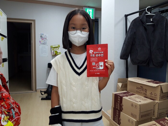 이날 배부된 구조손수건은 화재 발생 시 대피하는 동안 유독가스 흡입과 질식을 예방하기 위한 물품으로 화재발생 시 신속한 대피를 도와 인명피해를 최소화 할 수 있다.
