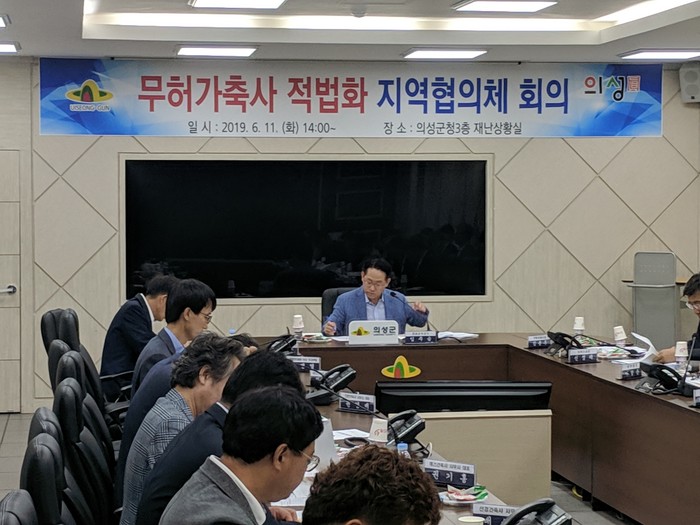 | ▲무허가축사 적법화 지역협의체 회의 모습.(의성군 제공) |