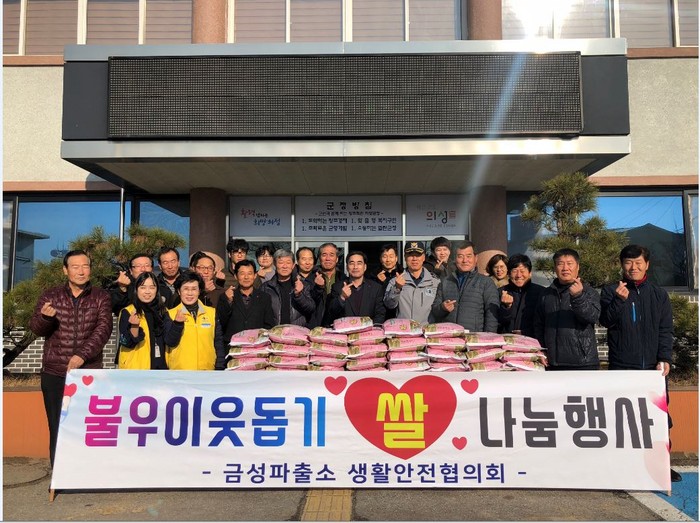 서병철 금성면 생활안전협의회장은 “연말연시에 우리 모두가 정을 나누어 추운 겨울을 따뜻하게 보내고 희망을 잃지 않는 행복한 겨울을 나길 바란다”고 말했다.