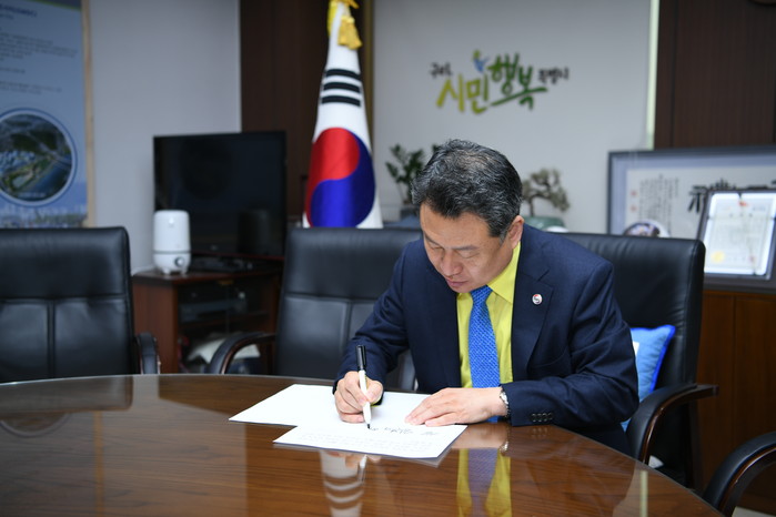 안 시장은 13번째 문장을 필사한 윤호중 국회의원(더불어민주당 사무총장)의 지명으로 참여하게 됐다.