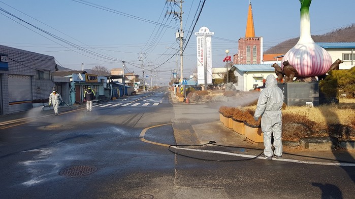 이날 일제소독은 면 소재지 기관 및 경로당, 취약가구를 방문해 산불진화 차를 이용한 방역을 실시했다.