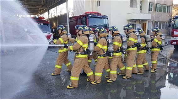 교육 참가자들은 새내기 소방관을 벗어나 프로 소방관이 되겠다는 굳은 신념으로 눈이 내리는 한파에도 불구하고 온몸이 땀에 흠뻑 젖을 정도의 열기로 가득 차 있었다.