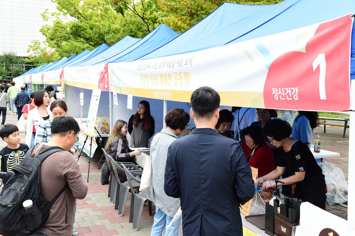 | ▲시민들이 장안구청 앞 문화마당에 설치된 홍보·체험부스를 둘러보고 있다. |