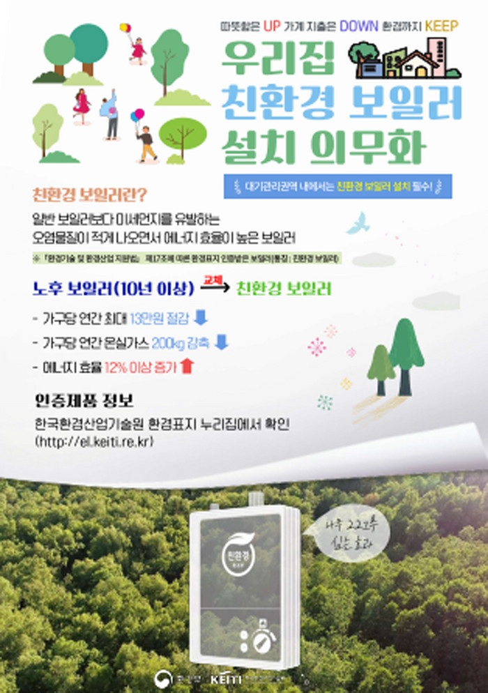 이 사업은 10년 이상 된 노후 보일러를 친환경으로 교체하는 주택 소유주 또는 위임받은 세입자 가구에 1대 설치당 10만원의 보조금을 지급한다.