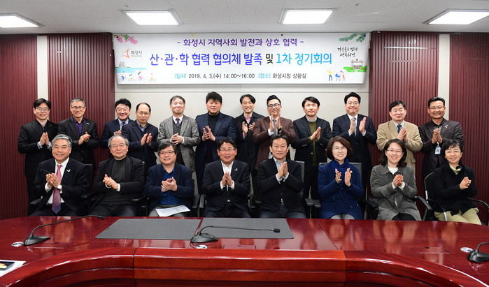 | ▲화성시 산·관·학 협의체 출범 기념 촬영 모습.(화성시 제공) |