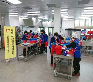 [로컬세계=박상진 기자]강원 태백시자원봉사센터(소장 김재찬)는 바르게살기운동 태백시협의회 여성회와 함께 올해 6월부터 9월까지 매월 1회 식생활취약계층에 여름철 보양음식을 전하는 ‘마을부뚜막’ 사업을 진행한다.