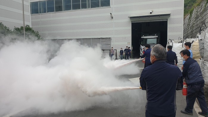 이번 모의소방훈련은 실제 화재가 발생한 상황을 가상하여 ▲최초 화재 발생자의 신고 및 초기진압 ▲근무자의 신속 대피 ▲비상대피로 확보 ▲ 화재 재발생 경계 ▲복구조치 등에 중점을 두고 진행됐다.