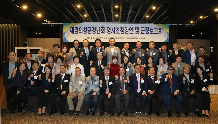 | ▲의성군은 지난 19일 서울 강남구 샹제리제 센터에서 재경의성청년향우회 정기총회에 참석해 군정보고회를 가졌다.(의성군 제공) |