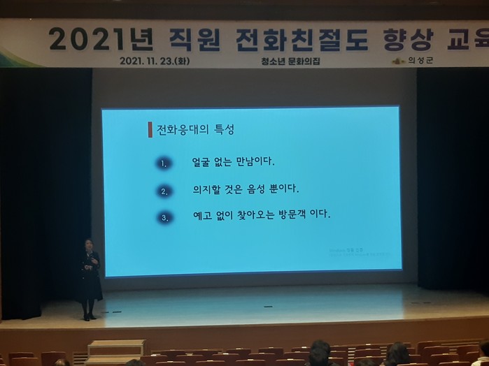 [로컬세계 박상진 기자]경북 의성군은 지난 23일 청소년문화의 집에서 공무원 60여 명을 대상으로 ‘2021년 직원 전화친절도 향상 교육’을 실시했다고 25일 밝혔다.