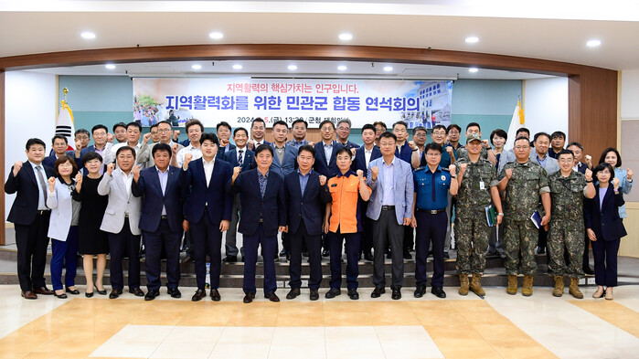 지난 5일 화천군 지역활력화를 위한 민관군 합동 연석회의가 군 대회의실에서 진행됐다. 이날 회의에는 최문순 군수, 류희상 군의장, 박대현 도의원, 봉윤일 NH농협 군지부장, 최임수 소방서장, 지역 군부대, 경찰서와 교육지원청, 공공기관 및 사회단체 관계자 등이 참석했다. 회의는 지속되는 인구감소 위기 극복과 지역현한 해결을 위한 협력과 공조를 강화하기 위해 마련됐다.(사진=화천군 제공)