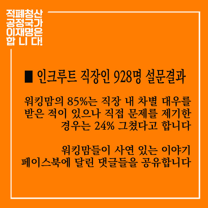 워킹맘에 대한 육아부담과 직장내차별 해소에 정책역량 집중