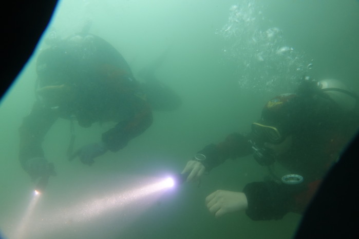 ▲수중감식 전문역량 강화를 위해 부산해경 전용부두 일원에서 수중 고도화 훈련 현장. 남해해경청 제공 |