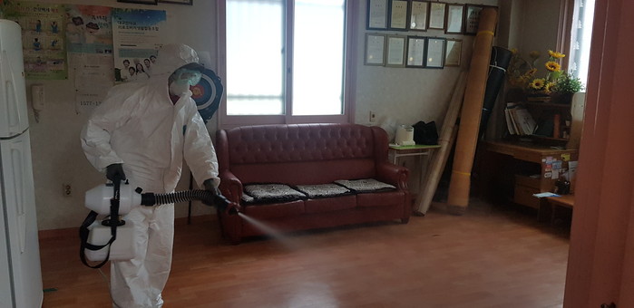 관내 모든 경로당이 코로나19로 임시휴관하고 있어 방역작업을 실시한 후 어르신들이 다시 경로당에 나오셨을 때 쾌적한 환경에서 여가를 즐기실 수 있도록 미리 준비한다.