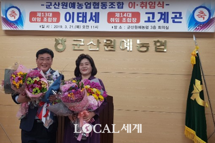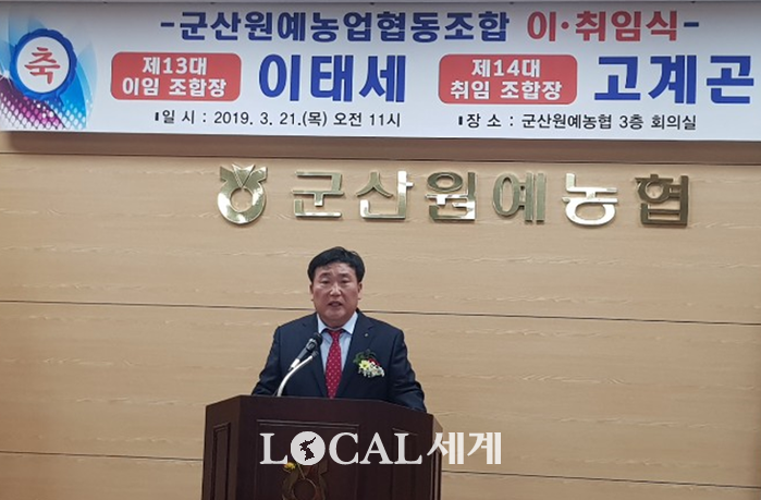 제2회 동시조합장 선거에서 무투표로 당선된 제14대 고계곤(60) 군산원예농업협동조합 신임 조합장은 취임사에서 “이태세 전 조합장님께서 잘 이끌어 오신 사업 기반을 통해서 지속성을 유지하고 보완해 나갈 수 있도록 하겠다”며 “조합원들의 의견을 경청·공감하면서 신뢰를 쌓고 힘을 모아 사업 성공을 이루는데 힘써 나가겠다”고 강조했다.