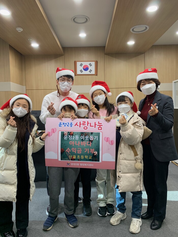 같은 날 산들초등학교에서도 소외계층 돕기 성금을 기부했다. 산들초등학교(교장 김정수)는 가정에서 사용하지 않는 물품들을 모아 알뜰시장에서 물품을 판매하고 그 수익금을 전달했다.