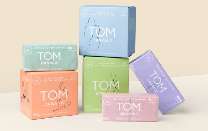 ‘톰(TOM) 오가닉’의 TOM은 ‘Time of Month’의 약자로 여성이 한 달에 한번씩 경험하는 날에 대한 케어를 의미한다. 호주 본사의 전 임직원이 여성으로 구성된 이 브랜드는 생리용품이 여성건강과 지구환경 측면에서 의식 있는 선택에 기반해 공급돼야 한다는 철학으로 설립된 것으로 알려져 있다.