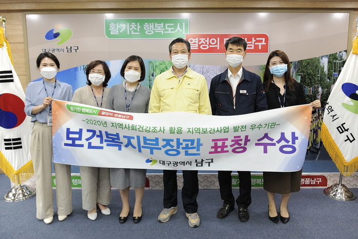 [로컬세계 박세환 기자]대구 남구청은 지난 22일 서울 밀레니엄 힐튼호텔에서 개최된 질병관리본부 주관 ‘2020년 지역사회 건강조사 질 관리 평가대회’에서 지역사회건강조사 자료를 활용한 지역사회 건강지표 개선 등 보건사업 발전에 대한 공적을 인정받아 보건복지부 장관 표창 수상의 영광을 안았다.