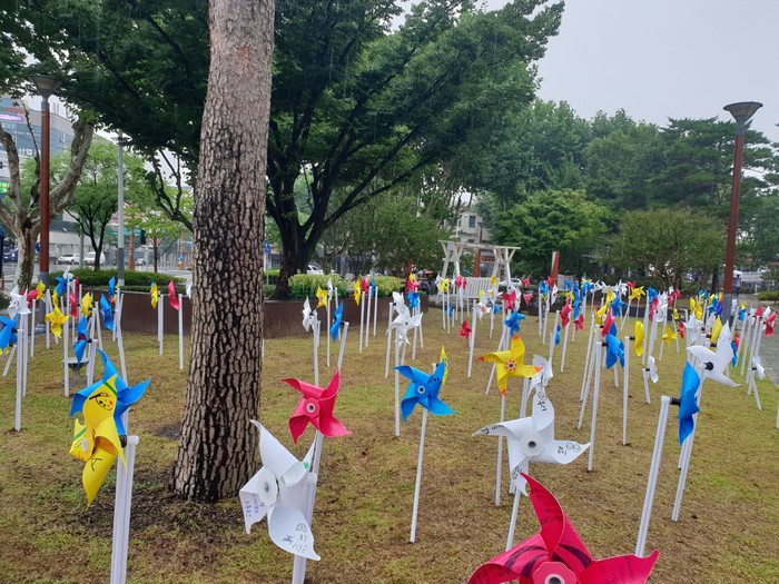 [로컬세계 박세환 기자]대구 북구청소년회관은 지난 29일 북구청소년 어울림마당사업의 일환으로 청소년 가족이 참여하는 희망 바람개비 만들기 ‘코로나19 희망 프로젝트’를 진행해 북구청 광장에 희망 바람개비를 설치했다.