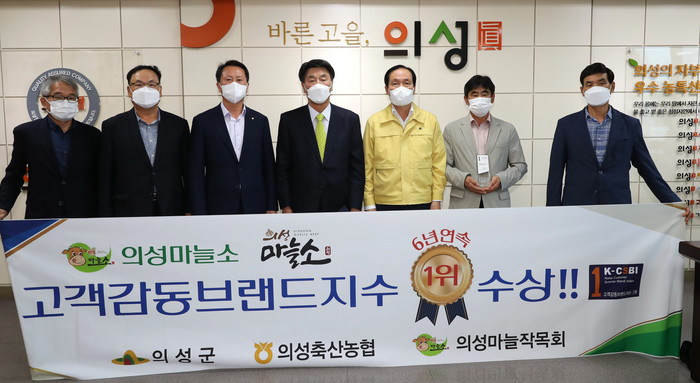 [로컬세계 박상진 기자]경북 의성군(군수 김주수)은 (사)한국브랜드경영인협회에서 주관하고 산업통상부가 후원하는 ‘2021년 고객감동브랜드지수 1위 ’지역특산물 한우부문에서 의성마늘소가 6년 연속 1위로 선정되는 영광을 차지했다고 17일 밝혔다.