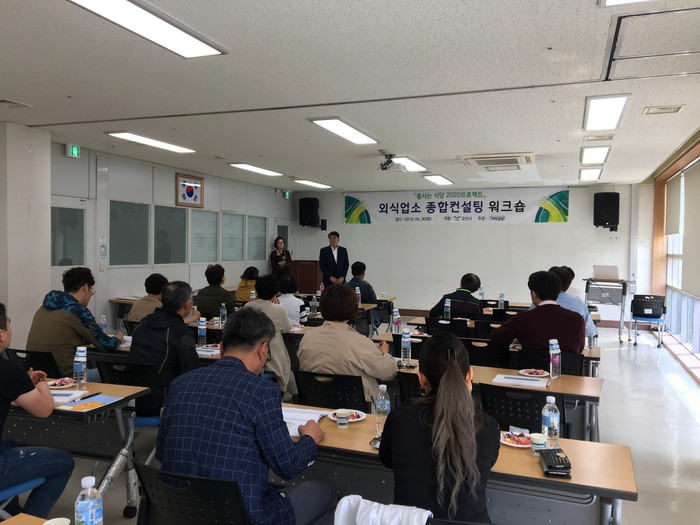 이날 워크숍은 2019년 종합컨설팅 대상업소 영업주, 컨설팅 용역사 관계자, 위생관련 단체 회원 등 30여 명이 참석한 가운데 사업안내 및 협약 체결, 외식 마케팅 및 친절서비스 교육을 등을 실시했다.