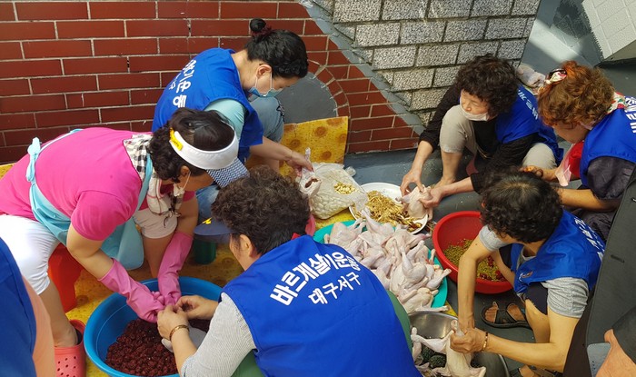 [로컬세계 박세환 기자]대구 서구 내당1동 바르게살기위원회(회장 이태화)는 지난 13일 말복을 앞두고 관내 어려운 이웃들이 무더운 여름을 건강하게 잘 보낼 수 있도록 정성껏 준비한 사랑의 삼계탕을 중장년층 70세대에 전달했다.