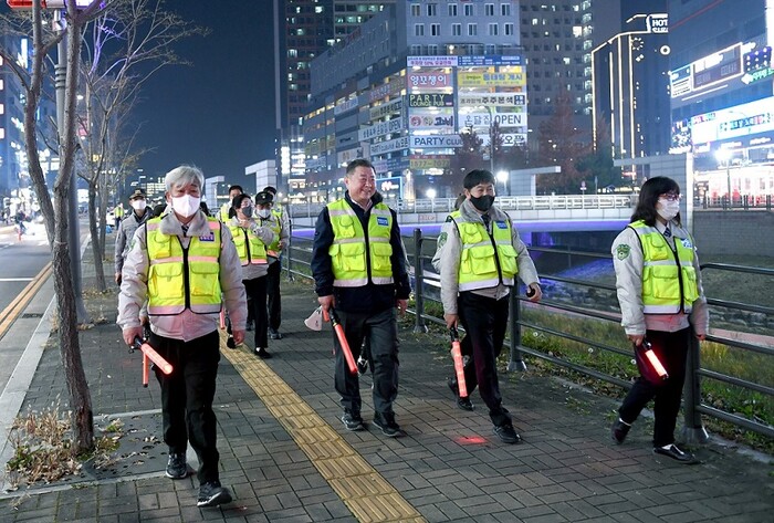 [로컬세계 = 이영원 기자]김경일 파주시장은 21일 파주시자율방범기동순찰연합대 운정 야간 공조순찰에 참여해 대원들과 함께 운정 지역을 순찰했다.