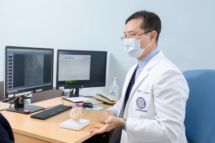 ▲강동경희대학교병원 심장혈관내과 박창범 교수가 급성심근경색에 대해 설명하고 있다. |