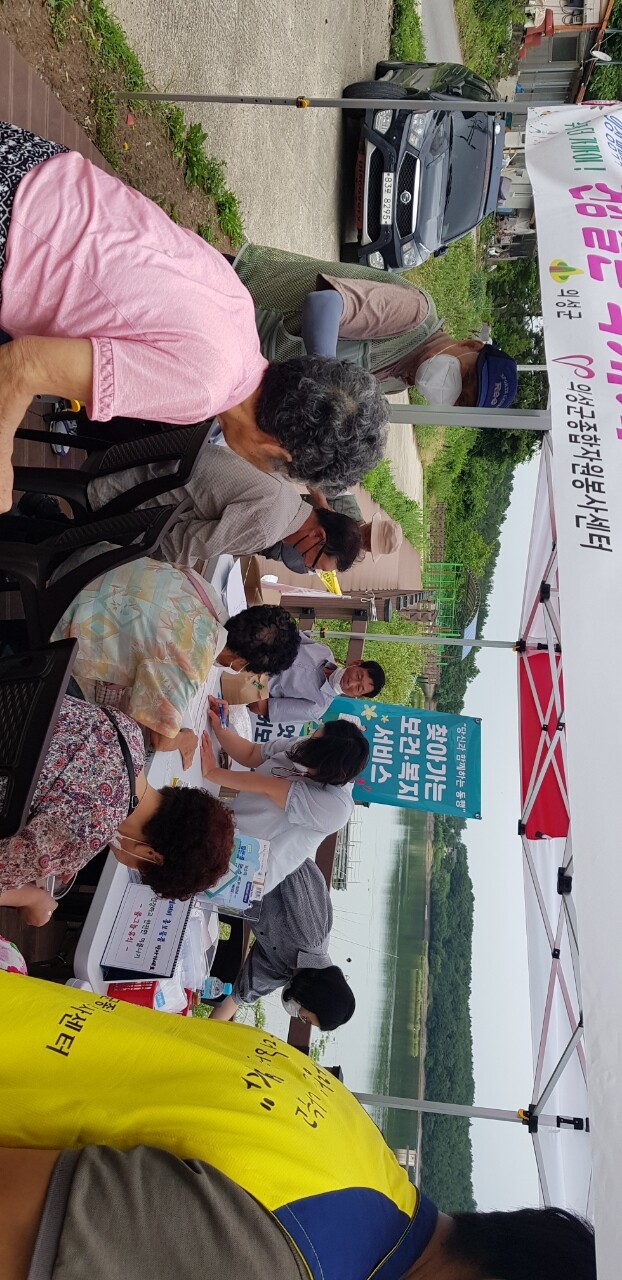 이날 행사에는 무더운 날씨 속에서도 50여명의 마을 어르신들에게 한방진료, 치과진료, 스트레스 측정, 우울측도검사, 치매선별검사 등의 의료.보건서비스와 대형이불 빨래, 목욕 등의 복지서비스를 함께 제공했다. 또한 면에서는 복지상담 및 주민욕구조사와 더불어 폭염대비 건강수칙을 주민들에게 홍보하고 건강꾸러미도 지원했다.