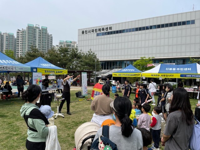 특히 가정에서 사용하지 않는 중고물품을 교환하고 판매하기 위해 마련된 돗자리마켓에는 30개 팀이 참여한 가운데 주민 300여 명이 찾아 성황을 이뤘다. 행사 수익금의 10%는 신봉동의 저소득층을 돕는 기금으로 활용된다.