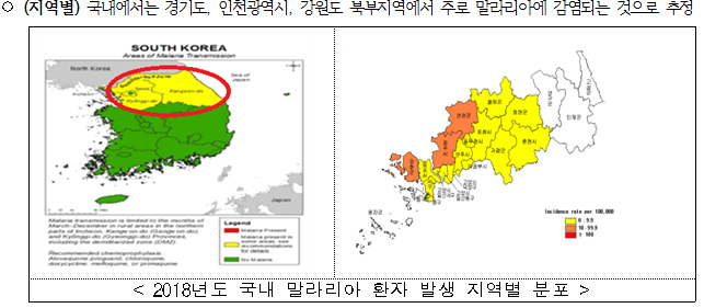 이밖에도 수혈로 인한 전파를 차단하기 위해 말라리아 환자 및 발생률이 높은 발생 국가 여행자의 현혈의 금지하고, 도내 말라리아 발생률이 높은 파주와 연천을 헌혈 제한지역으로 지정한 상태다. 또한 오는 7~8월 방역인부 및 사업담당자를 대상으로 방제역량 강화 교육을 실시할 예정이다.