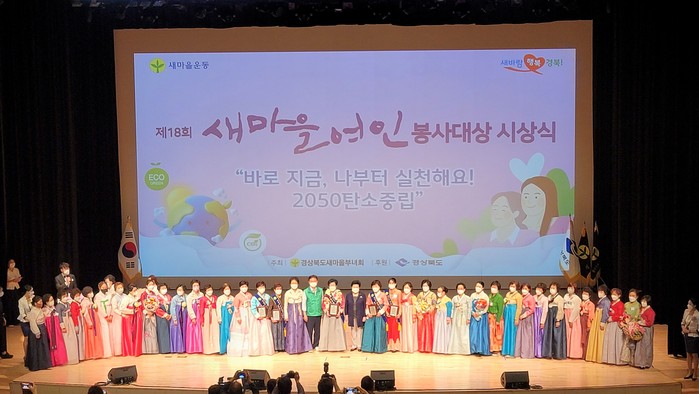 [로컬세계 박상진 기자]경북 의성군새마을부녀회(회장 조명희)는 지난 5일 도청 동락관에서 개최한 제18회 새마을여인봉사상 시상식에서 새마을여인봉사상 외 2개 부문을 수상했다고 6일 밝혔다.