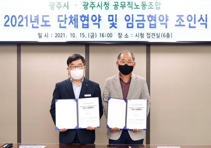 신 시장은 “2021년도 단체교섭의 성공적인 체결이 코로나19로 힘든 상황에서 직원들의 사기진작과 행정서비스 향상으로 이어져 시민과 직원 모두 행복한 광주시가 만들어질 것으로 확신한다”며 “시에서도 노조와 함께 직원들의 복지향상, 근로조건 개선을 위해 관심과 지원을 아끼지 않을 것”이라고 전했다.