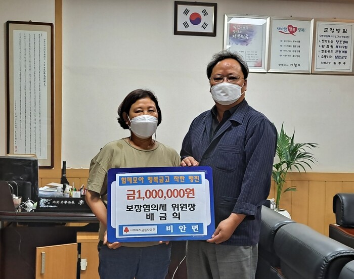 신영수 비안면장은 “복지사각지대 예방과 지역욕구에 따른 맞춤형 특화사업 추진을 위한 기부금 모집에 적극 동참해 주시는 비안면민에게 고마움을 느끼며 행복한 비안을 만들 수 있도록 더욱 노력 하겠다”고 말했다.