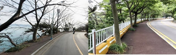 서구는 이번 공사에서 방호벽(343m)와 도로경계석(387m)를 말끔하게 정비했으며, 방호벽 뒤쪽에는 주변 환경과 잘 어우러지는 디자인의 안전난간(475m)도 설치해 보행자 낙상 등 안전사고를 원천 차단했다. 뿐만 아니라 도로경계석에는 반사 페인트를 칠해 차량들이 야간이나 빗길 주행 시 커브지점에서 보도를 침범해 발생할 수 있는 교통사고를 예방하도록 했다.