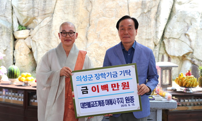 아울러 마애사 주지 원종스님이 의성군에 장학금 200만원과 단밀면 발전기금 100만원을 전달했다.