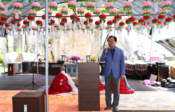 김주수 군수는 “마애사 건립 1주년을 축하하며, 모든 지역 주민들이 건강하고 행복해지기를 염원하고 신도들은 성불하기를 바란다”고 말했다.