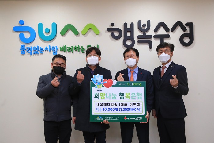 김대권 수성구청장은 “지역 사회에 따뜻한 마음을 나눠주셔서 감사하다”며, “보내주신 물품은 시설의 어려운 이웃들을 위해 사용하겠다”고 말했다.