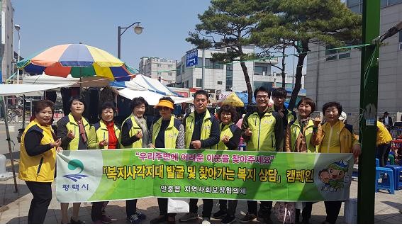 [로컬세계 주덕신 기자]경기 평택시 안중읍지역사회보장협의체는 지난 16일, 안중시장에서 ‘우리 주변에 어려운 이웃을 찾아주세요’라는 슬로건 아래 복지사각지대 발굴 캠페인을 펼쳤다고 17일 밝혔다.