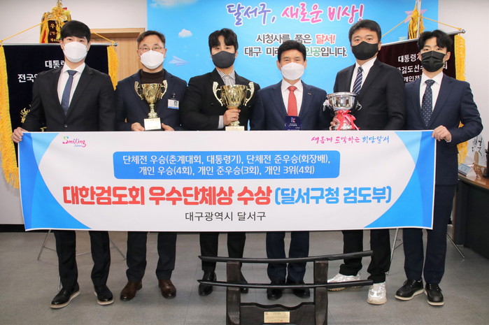 9일 달서구에 따르면 대구 유일의 검도 실업팀인 달서구청 검도부는 2021년 9개의 대회에 참가해 춘계전국실업검도대회 단체전과 개인전 우승을 포함, 마지막 대회인 대통령기전국검도대회 단체전과 개인전 우승까지 모두 6개 대회에서 입상하는 성과를 거두었다.