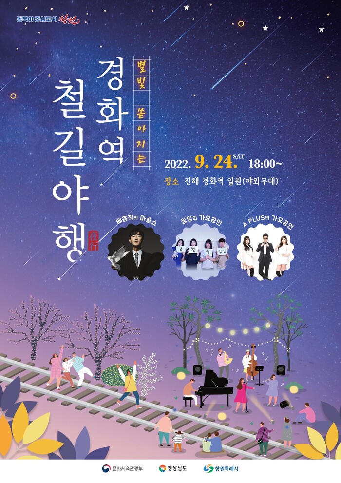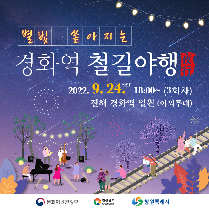 창원특례시(시장 홍남표)는 ‘별빛 쏟아지는 경화역 철길야행’ 3회차 행사를 오는 24일 토요일 저녁 6시 진해구 경화역 공원 야외무대에서 개최한다고 20일 밝혔다.