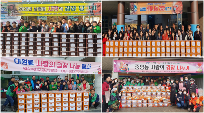 대원동은 지난 15~16일 양일간 대원동 행정복지센터 앞마당에서 대원동 새마을부녀회 등 7개 단체 주관으로 김장 나눔 봉사활동을 진행했다고 밝혔다. 매년 동절기마다 어려움을 겪는 관내 소외계층이 따뜻한 겨울나기를 바라는 마음으로 약 70여 명의 단체회원과 동 직원들이 참여했다.