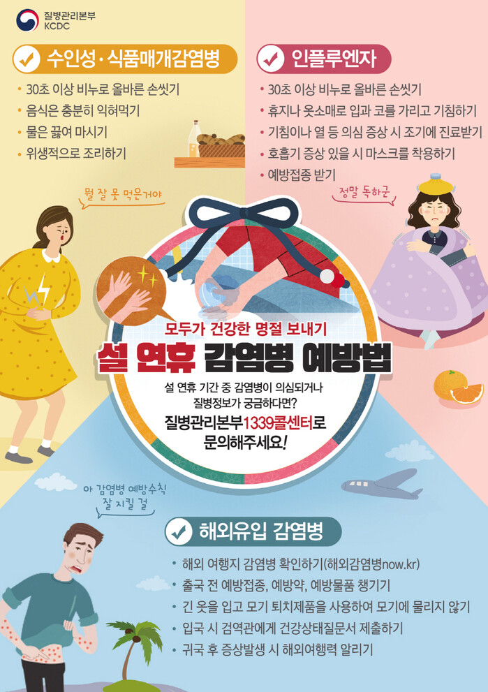 설 연휴는 음식을 대량으로 장만하고 여러 사람이 공동으로 섭취하는 일이 많아 수인성·식품 매개 감염병이 발생하기 쉽다.
