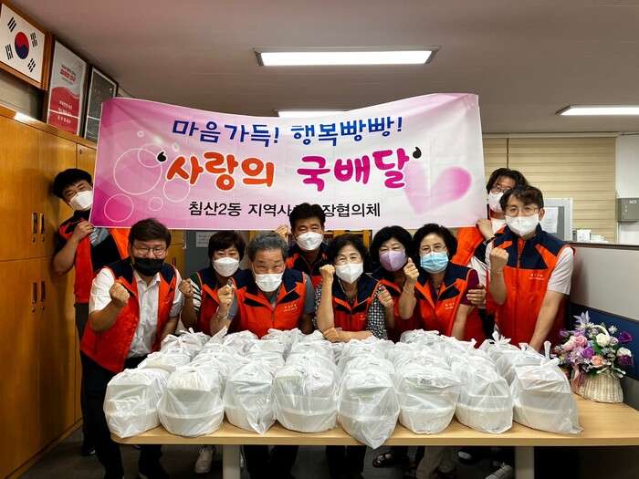 [로컬세계=박세환 기자] 대구 북구 침산2동 지역사회보장협의체(공동위원장 황현숙, 이상권)는 지난달 29일 행정복지센터에서 마음가득! 행복빵빵!‘사랑의 국 배달사업’을 진행했다고 1일 밝혔다.