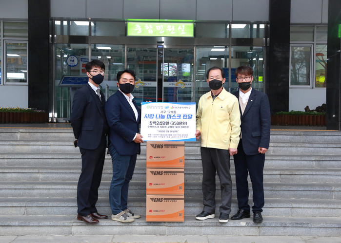 [로컬세계 박세환 기자]대구시중소상공인협회 서대구지회(회장 이성호)는 26일 서구청을 방문해 코로나19로 어려움을 겪고 있는 분들에게 따뜻한 위로의 말을 전하며, 필터교체형 면마스크 500장을 전달했다.