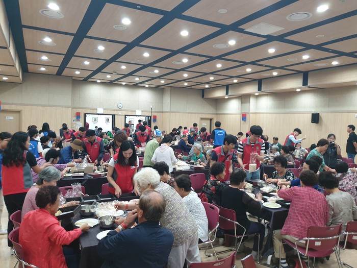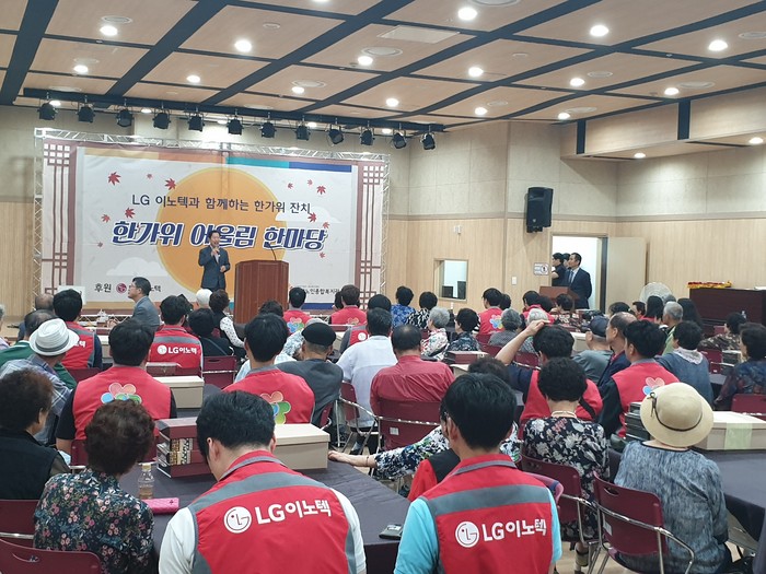 이번 행사는 지역사회에서 돌봄이 필요한 홀몸어르신, 사회적으로 고립감과 소외감으로 있는 저소득 계층, 사할린 동포 등 120여 명의 어르신들과 LG이노텍(주) 직원 40여명이 자원봉사자로 참여해 자리를 만들었다.