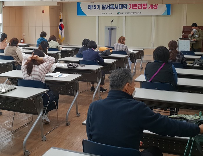 달서독서대학은 독서지도 활동을 위한 자질 양성을 목표 아래 2009년부터 기본·심화과정을 구성해 개인의 역량개발은 물론 재능기부와 자격증 취득 기회를 잡을 수 있는 독서교육프로그램이다.