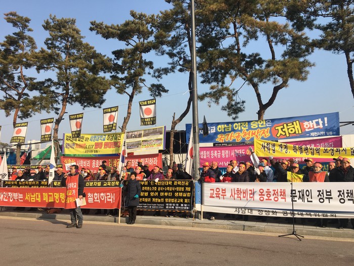 18일, 겨울 한파 속에 시작된 전북도민과 남원시민들은 폐교 명령을 내린 교육부와 청와대를 상대로 서남대 폐교 명령에 대한 부당함을 온몸으로 항거하고 나섰다.