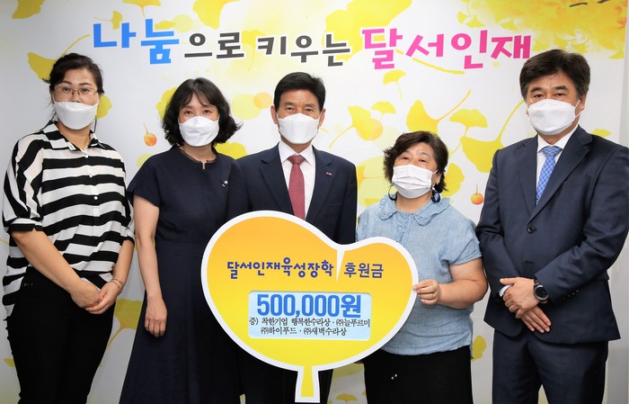 [로컬세계 박세환 기자]대구 달서구는 지난 16일 ‘희망더하기 먹거리연대’ 4개 기업에서 지역 인재육성을 위한 후원금 50만원을 (재)달서인재육성장학재단에 전달했다고 20일 밝혔다.