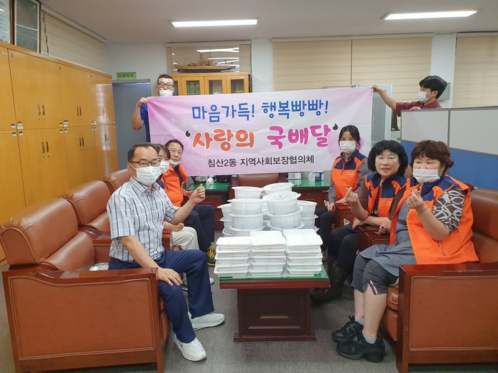 대구사회복지공동모금회 읍면동 특화사업으로 진행하고 있는‘사랑의 국배달’사업은 침산2동지역사회보장협의체 중심으로 그동안 결식 우려가 있는 복지위기 가구에 직접 국과 밑반찬을 조리하여 전달하였으며 이를 통해 보다 촘촘한 복지 안전망을 구축하고 주민 삶의 질 향상에 기여하고 있다.