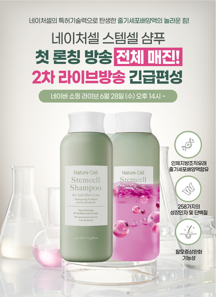 세계 최초로 '줄기세포를 젊게 만들기 위한 배지조성물 특허(특허등록번호 10-1598813-0000)'기술로 생산된 닥터쥬크르 네이처셀 스템셀 샴푸는 지난 5월 27일 출시 방송 시 준비수량 1만5천개가 전량 매진, 최근 3개월간 화장품/미용 전체 카테고리의 9446개 라이브 방송, 9만3천개 판매 상품 중 매출 1위를 기록했으며 방송 후 수백건의 고객후기가 올라오는 등 큰 화제를 모았다.